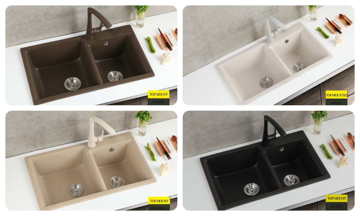 RENIST GD830 31-Inch Topmounted 60/40 Double Bowl Granite Kitchen Sink